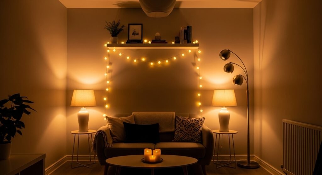Lighting is perhaps the single most important element in creating a cozy atmosphere, and layering multiple light sources is the key to getting it right. Instead of relying on one harsh overhead fixture, combine table lamps, floor lamps, wall sconces, candles, and string lights to create pools of warm golden light throughout your space.
