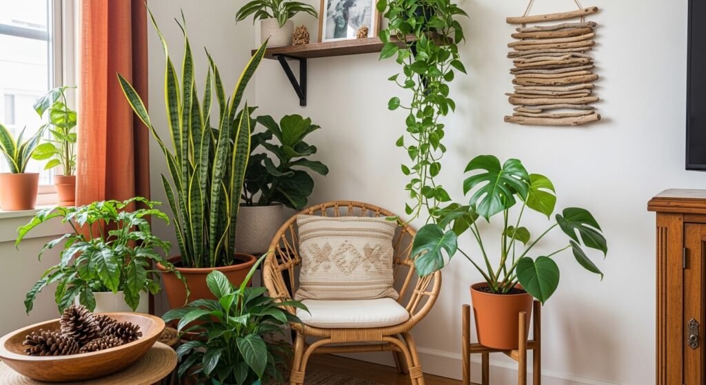 Bringing nature indoors is one of the most universally loved cozy small living room ideas on Pinterest. Indoor plants add life, color, and texture to any space while purifying the air and boosting mood. Even in the smallest rooms, a few well-placed plants create an organic warmth that synthetic decor simply can’t replicate.