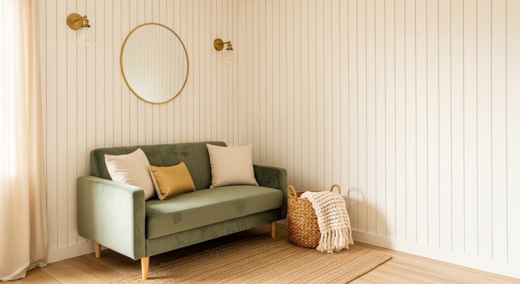 This is one of those cozy small living room ideas that looks high-end but can be surprisingly affordable as a DIY project. Paint your paneling in a warm white, soft cream, or even a moody dark tone depending on your desired atmosphere. The added dimension catches light beautifully, creating subtle shadows that make the wall feel alive. It’s a permanent upgrade that adds both coziness and value to your space.