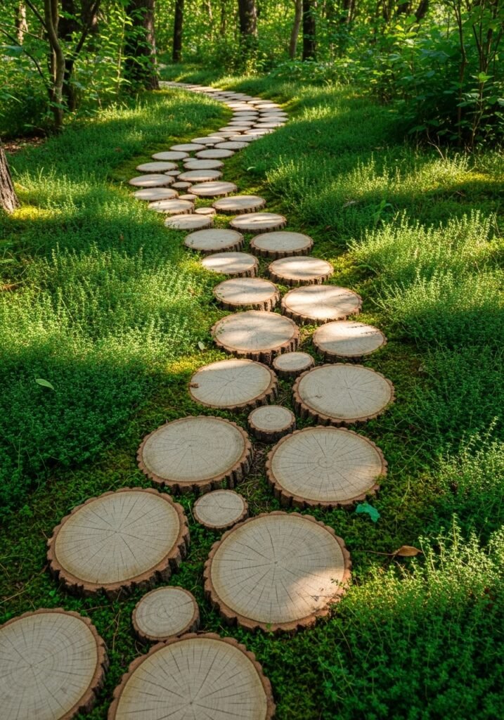 Seal the wood slices to protect against moisture and extend their lifespan through multiple seasons. Space them irregularly through ground cover or gravel for an organic, wandering path effect. This is one of those garden ideas that feels like it’s always been there—timeless, natural, and perfectly aligned with the effortless beauty of rustic garden decor.