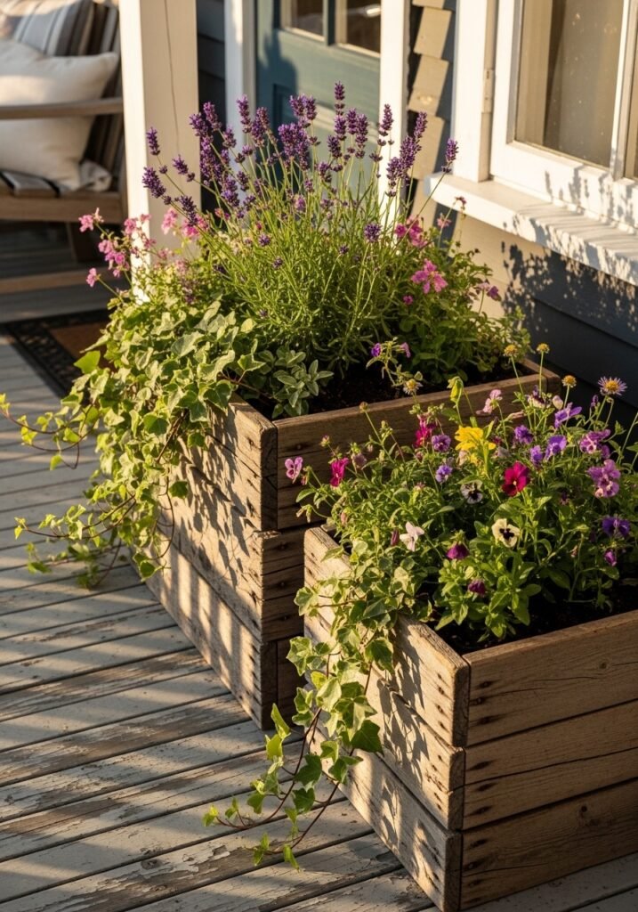 1. Weathered Wooden Planter Boxes