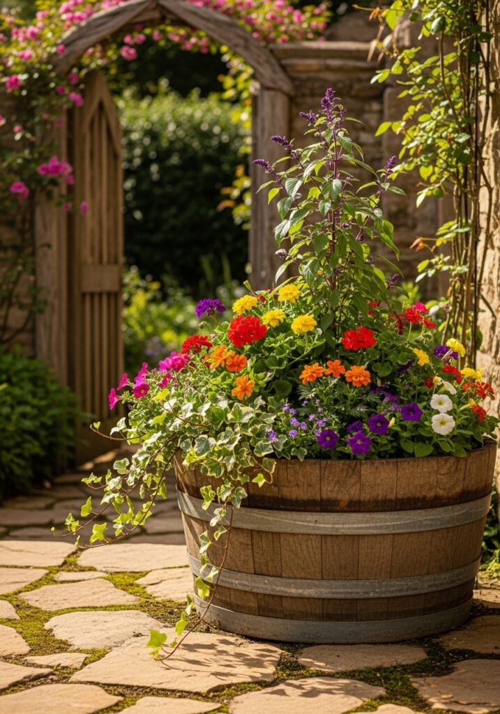 26. Wine Barrel Planter