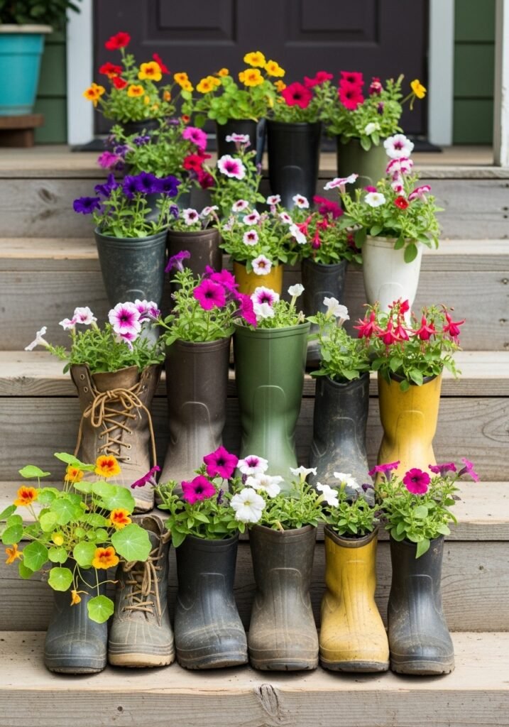 Stack them at different heights for a layered look that draws the eye. Fill them with lavender, wildflowers, or trailing ivy to enhance that garden aesthetic everyone loves. These planters are among the easiest garden decor projects to tackle over a weekend, and they deliver maximum visual impact with minimal effort.