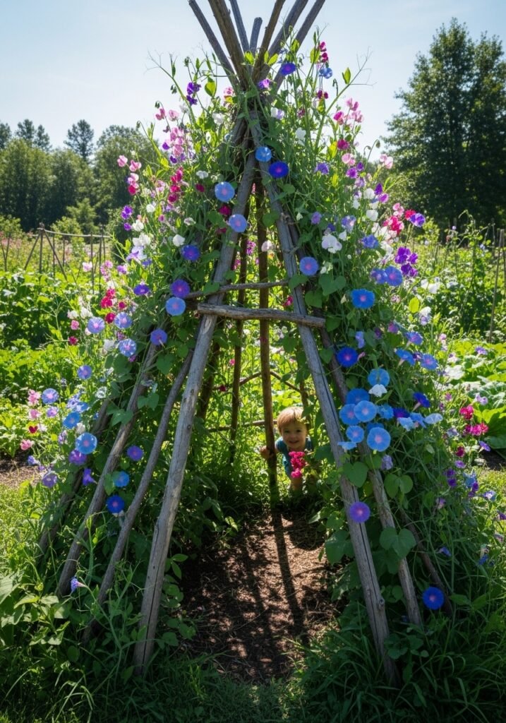 This vertical garden approach creates natural room dividers in outdoor spaces without building permanent structures. The gently swaying plants add movement and life to patios, porches, and garden rooms. Among all garden decoration ideas, a living plant curtain delivers the most dramatic, immersive experience and transforms flat outdoor spaces into layered, rustic garden environments.