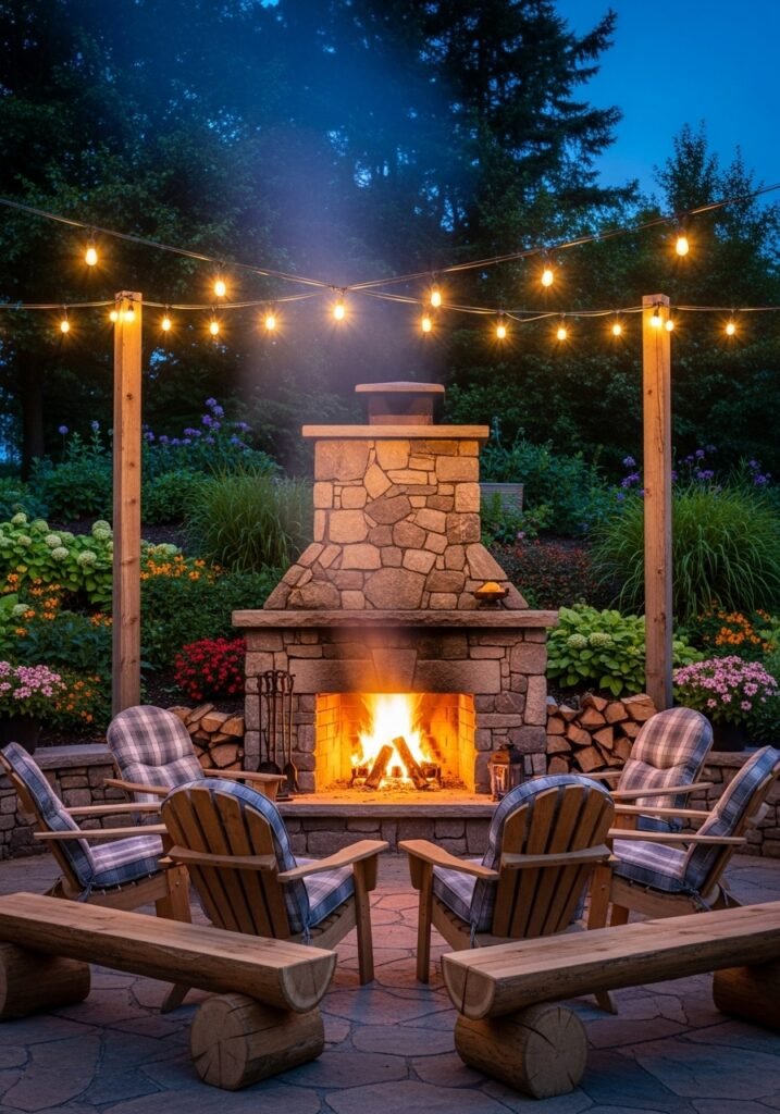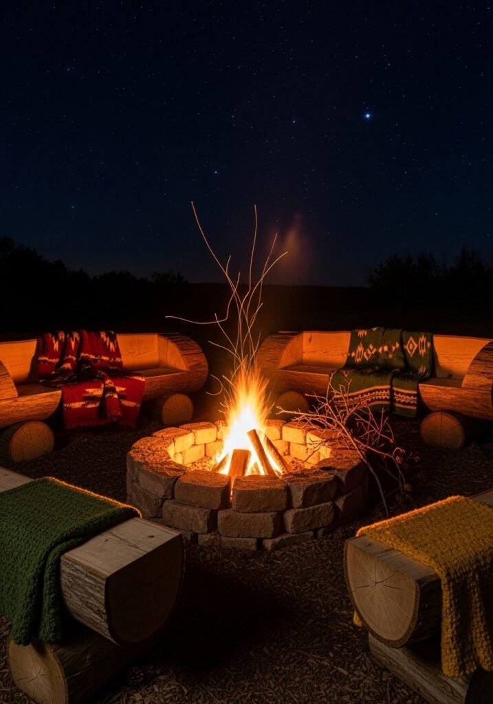 Toast marshmallows, share stories, and stargaze from your log seats while the fire crackles warmly in the center. Add cozy blankets and a firewood rack nearby for complete functionality. This essential garden decor feature anchors your entire backyard design and creates the ultimate rustic retreat for friends and family.