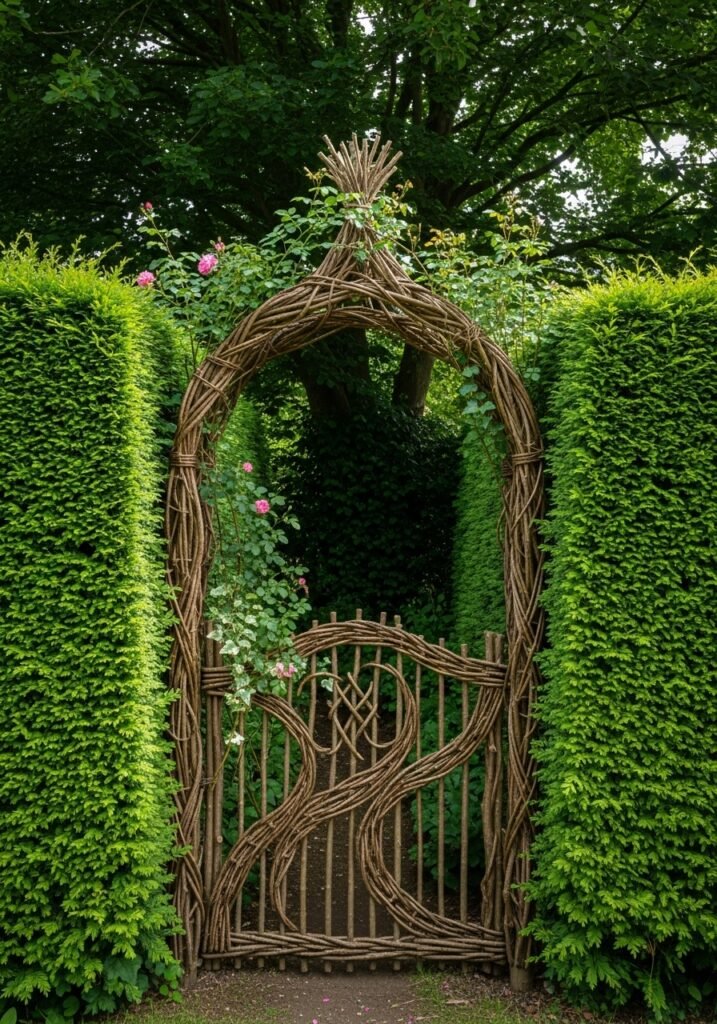 Create an outdoor garden room by training hedges, climbing plants, or tall ornamental grasses to form living walls around a seating area. This natural enclosure provides privacy, wind protection, and a immersive rustic garden experience that feels like stepping into a secret green sanctuary.