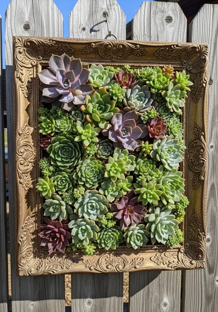 The peeling paint and aged wood of a vintage window frame add authentic character that complements any garden aesthetic. Surround it with climbing vines or hanging baskets for a truly enchanting scene. This is one of those garden ideas that interior designers love to use outdoors, creating depth and visual intrigue effortlessly.