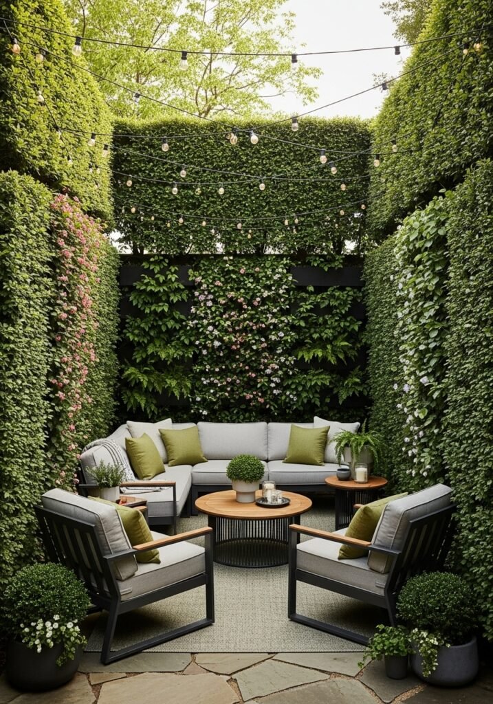 Add comfortable seating, a small table, and ambient lighting within your living garden room for a truly magical retreat. This is the ultimate expression of garden aesthetic that blurs the line between indoor comfort and outdoor beauty. Among all garden decoration ideas, living walls create the most immersive environments that make your rustic gardens feel truly extraordinary.