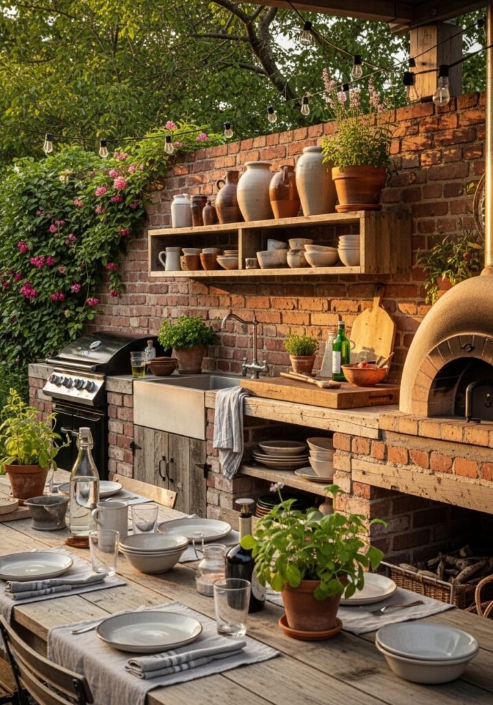 An outdoor kitchen built with reclaimed materials tells a story of resourcefulness and creative vision that factory-made kitchens cannot match. It becomes the natural gathering point for family meals, celebrations, and everyday enjoyment. This is one of those ambitious garden ideas that completely redefines how you live outdoors and experience your rustic garden.