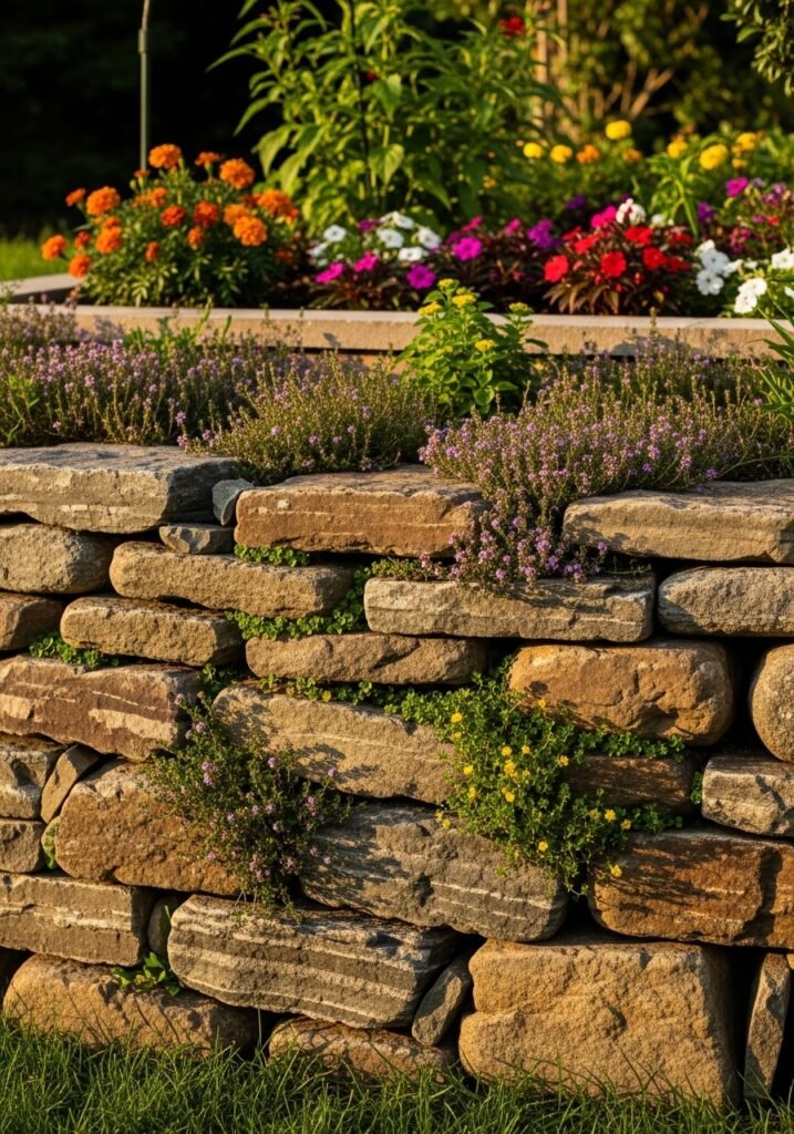 Allow small plants, creeping thyme, or sedum to colonize the gaps between stones for a naturalized, aged appearance. Stone walls provide excellent habitat for beneficial insects and small garden creatures. Among all garden decoration ideas, a hand-stacked stone wall delivers the most permanent, substantial contribution to your rustic garden landscape.