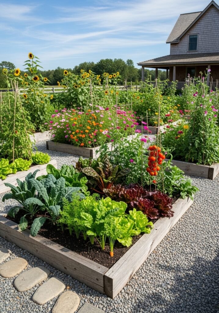 Fill beds with rich soil and plant vegetables, cutting flowers, or perennial borders for year-round interest and productivity. The weathered wood or stone edges develop more character each year. Raised beds are fundamental garden ideas that organize your growing space while adding architectural substance and authentic rustic charm to your entire garden landscape.