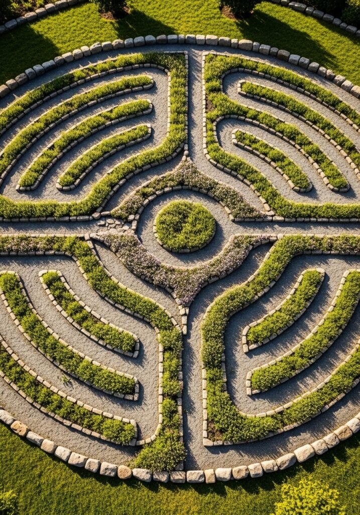 Plant creeping thyme, chamomile, or moss between the path stones for fragrance released with every step. Your garden labyrinth becomes a destination for mindful walking, quiet reflection, and peaceful solitude. This extraordinary garden idea transforms your rustic garden into a sacred, meaningful space that nourishes the soul as beautifully as it pleases the eyes.