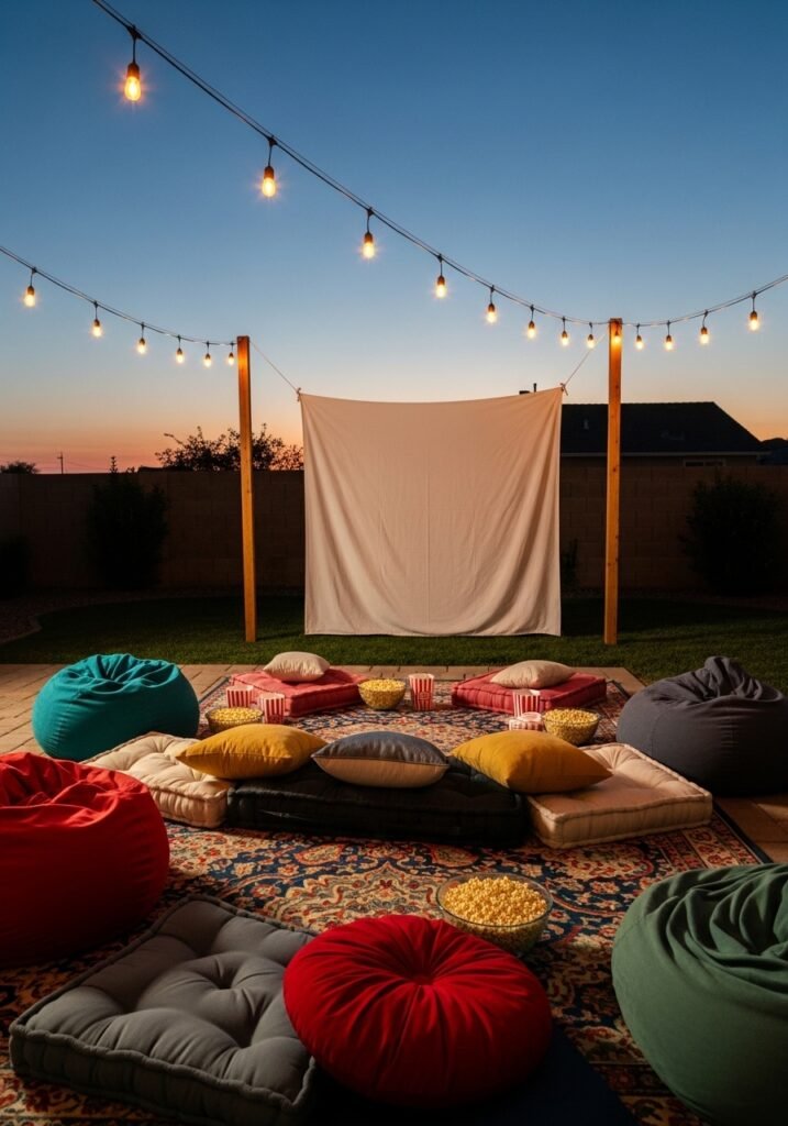 Scatter floor cushions, bean bags, and blankets in front of the screen for comfortable viewing. Set up a small snack station with popcorn and drinks nearby. This entire setup can cost as little as thirty dollars if you already own a projector, making it the ultimate budget entertainment upgrade for your small patio.