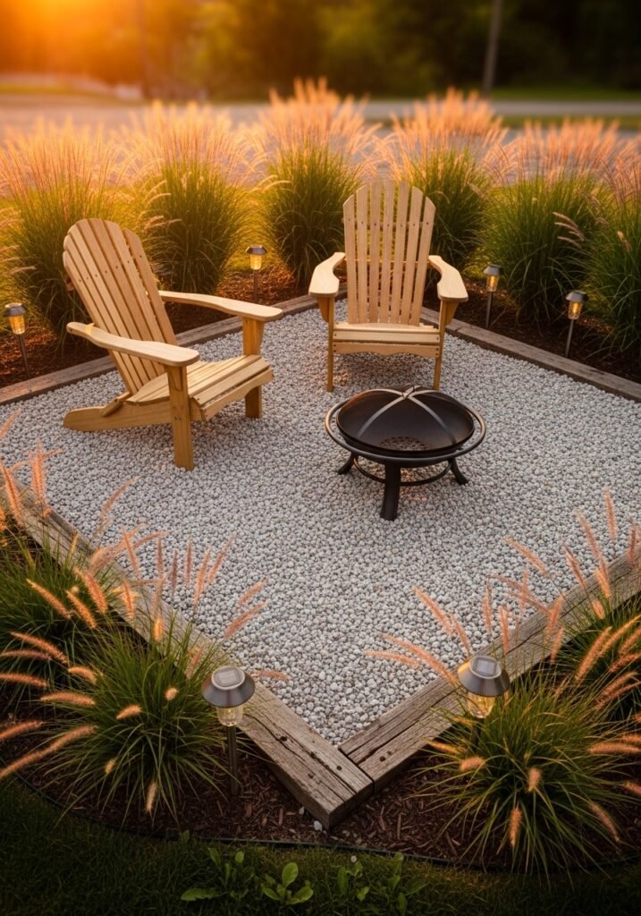 Creating a gravel base is one of the simplest small patio ideas on a budget for defining your outdoor space. Pea gravel or crushed stone is significantly cheaper than pavers or concrete and creates a clean, attractive surface. Edge the area with inexpensive landscape timbers or bricks for a polished, intentional appearance.