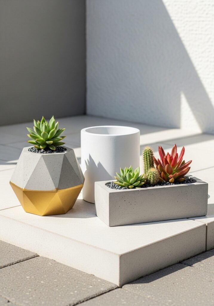 You can paint the finished planters in geometric patterns, dip them in metallic paint, or leave them in natural concrete gray for a minimalist look. Different sized molds create a curated collection that looks expensive but costs pennies per planter. These heavy, durable containers are perfect for succulents, cacti, or small flowering plants on your patio.