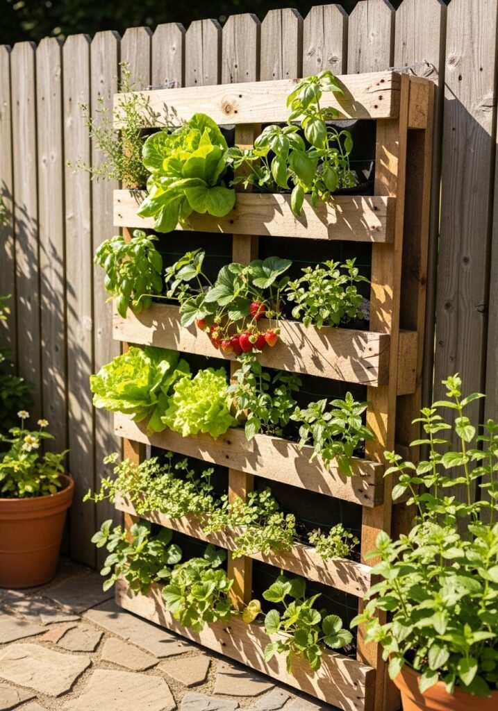 This project takes about an hour and costs almost nothing if you source a free pallet. Strawberries, lettuce, herbs, and trailing flowers all thrive in this vertical format. The result is a show-stopping garden feature that saves floor space, grows food, and adds dramatic natural beauty to your small patio.