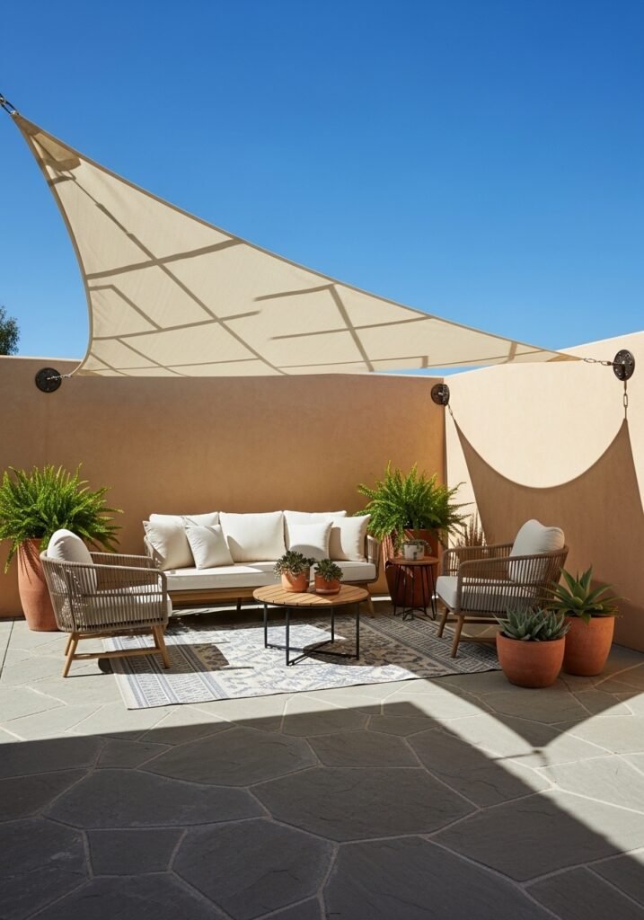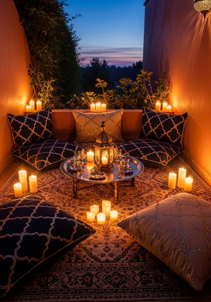 Floor pillows can be stacked when not in use, making them perfect for small spaces that need flexibility. Mix large and small sizes in coordinating patterns—think Moroccan, tribal, or geometric prints. Add a low tray table in the center for drinks, and you’ve created an outdoor lounge that feels like a rooftop riad for under twenty-five dollars.