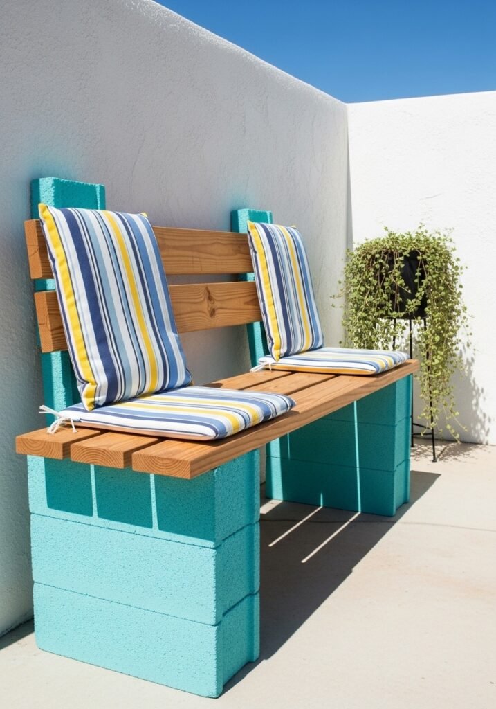 You can paint the cinder blocks in vibrant colors like coral, turquoise, or classic white for a modern aesthetic. Add outdoor cushions and throw blankets to make the bench extra comfortable. This DIY project typically costs under twenty dollars and provides permanent seating that withstands all weather conditions beautifully.