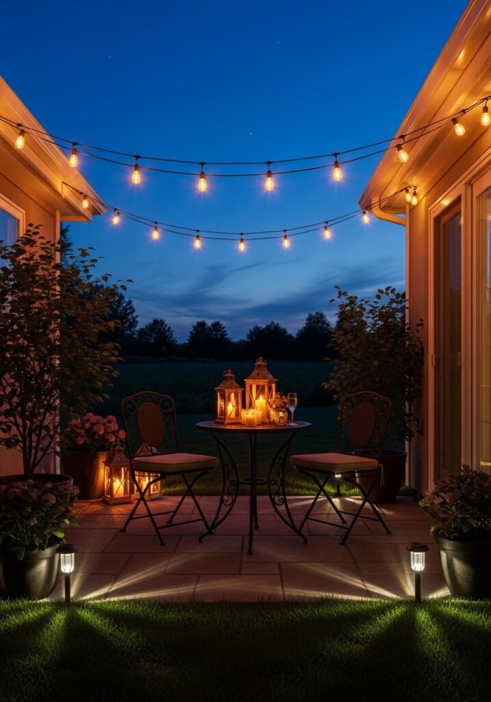Modern solar lights come in various styles from sleek contemporary to vintage lantern designs. They charge automatically during daylight hours and illuminate your patio beautifully each evening. Line them along pathways, around seating areas, or among flower beds for a professional landscaping look that costs almost nothing to install and maintain.