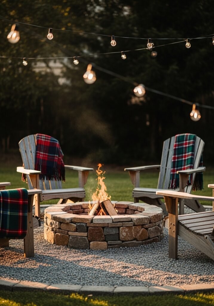 Creating a small fire pit area is one of the most beloved small patio ideas on a budget for cool-evening entertaining. You can build a simple fire pit using inexpensive landscape stones or bricks arranged in a circle. Surround it with thrifted chairs or floor cushions for a cozy gathering spot that family and friends will adore.
