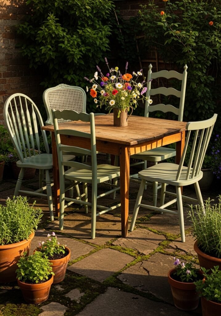 Thrift store furniture makeovers are a cornerstone of creative small patio ideas on a budget. Hunt for solid wood chairs, tables, and benches at garage sales, thrift stores, and Facebook Marketplace. With a can of spray paint, new hardware, and weatherproofing sealant, you can transform tired pieces into stunning outdoor furniture for a fraction of retail prices.