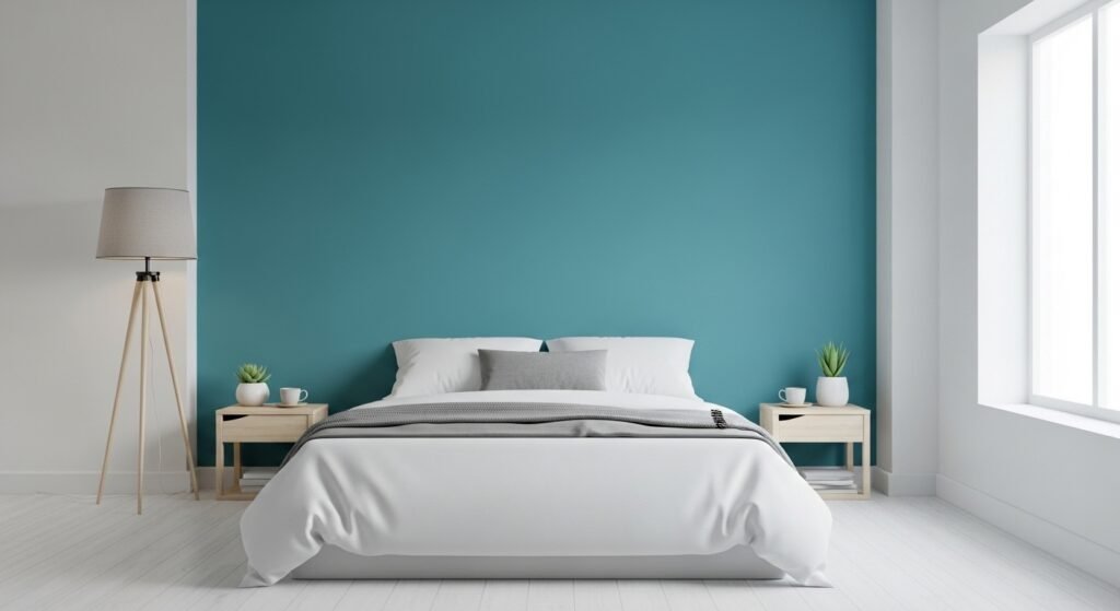 The beauty of this design lies in its versatility and simplicity. You can easily switch up the room’s mood by changing throw pillows, artwork, or decorative accessories. This is one of the most popular teal bedroom ideas because it offers maximum impact with minimal commitment, making it perfect for renters or those who like to refresh their decor regularly.