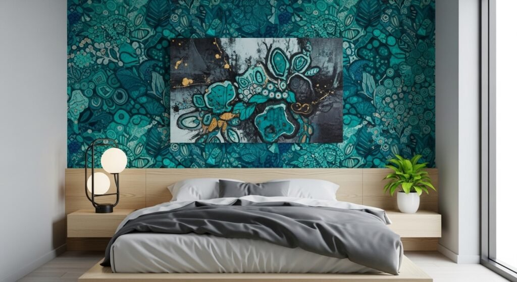 Add modern sophistication with teal geometric patterns through wallpaper, bedding, or artwork. Geometric designs in teal create visual interest while maintaining a contemporary aesthetic that feels current and stylish. Whether you choose hexagons, chevrons, or abstract shapes, these patterns add energy and movement to your bedroom design.