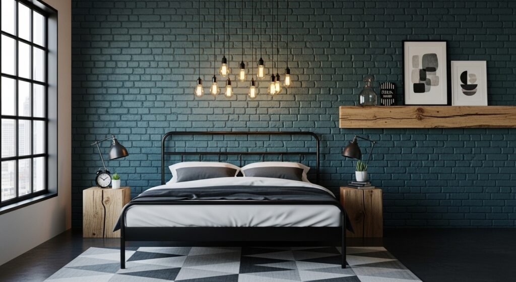 Combine the softness of teal with the edginess of industrial design for a unique bedroom aesthetic. Expose brick walls and paint them teal, or keep brick natural and add teal through furniture and textiles. Pair with metal accents, Edison bulb lighting, and raw wood elements to create a sophisticated urban loft vibe that balances masculine and feminine qualities.