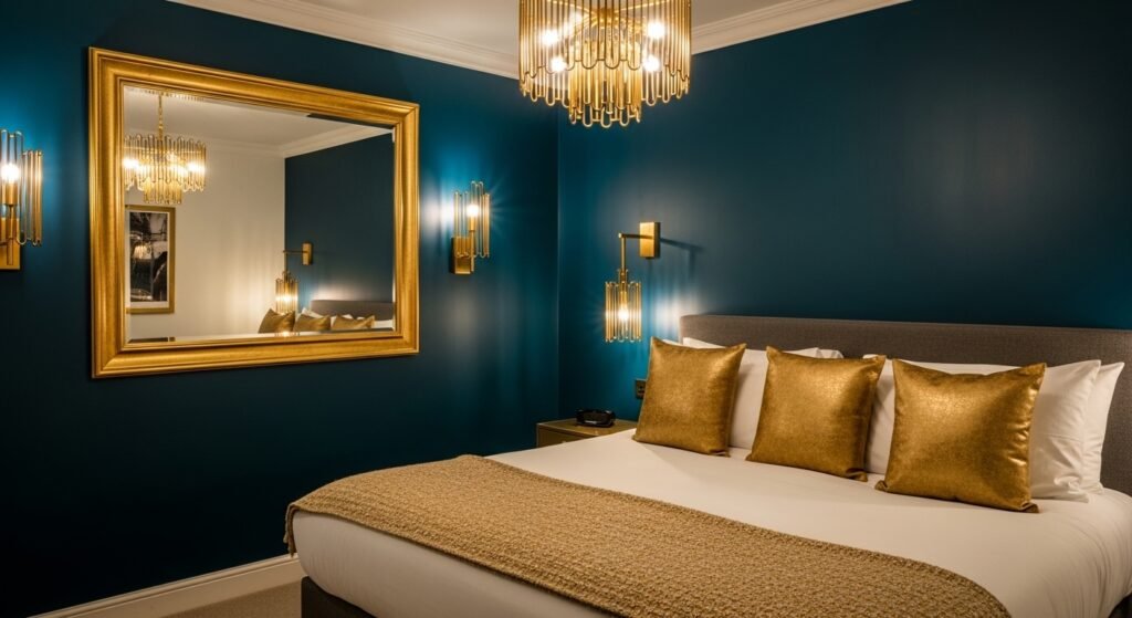 Combine the coolness of teal with the warmth of gold accents for a truly luxurious bedroom design. This color pairing creates a balanced, sophisticated space that feels both regal and relaxing. Incorporate gold through light fixtures, mirror frames, drawer pulls, and decorative objects to add shimmer and shine throughout the room.