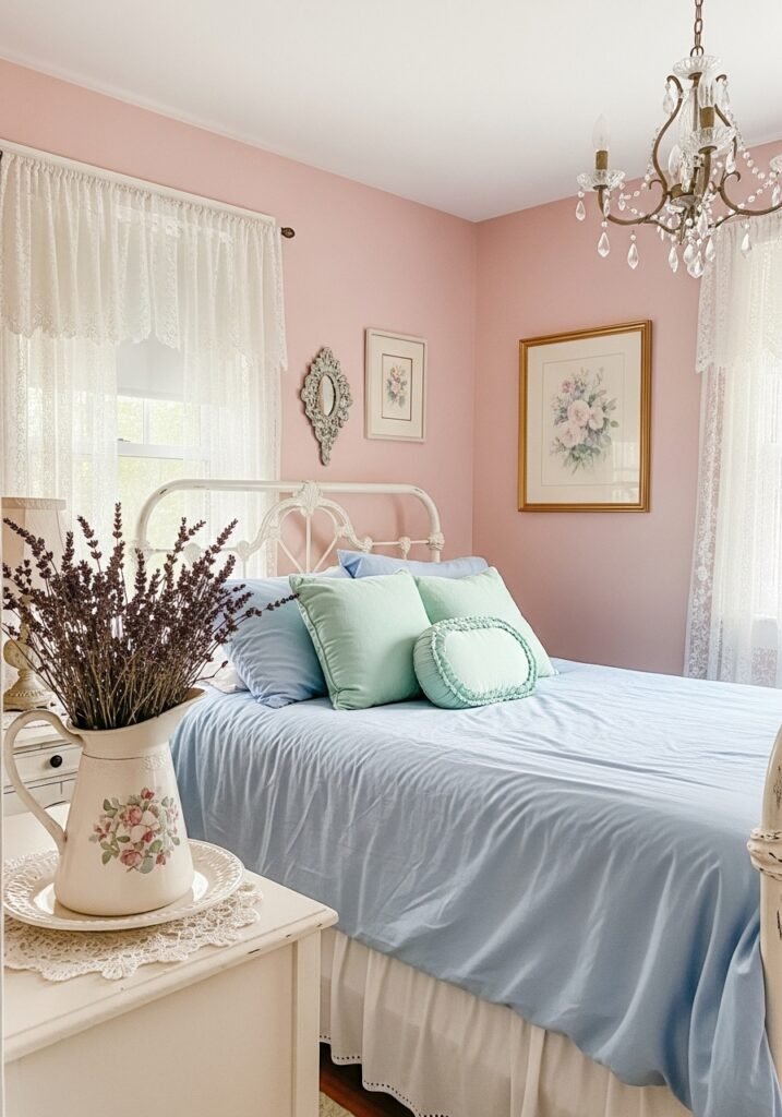Embracing a soft pastel color palette is essential for creating a dreamy vintage atmosphere. Think blush pink, powder blue, mint green, lavender, and buttercream yellow. These gentle hues evoke the softness of bygone eras and create a calming, romantic environment perfect for rest and relaxation.